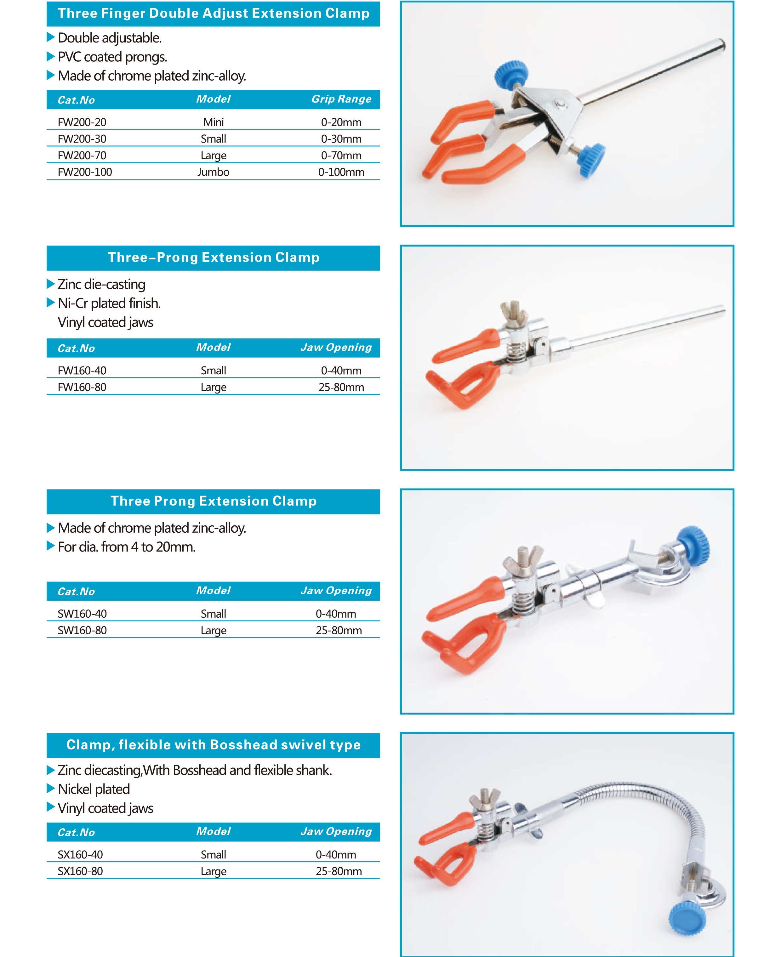 Three Finger Double Adjust Extension Clamp