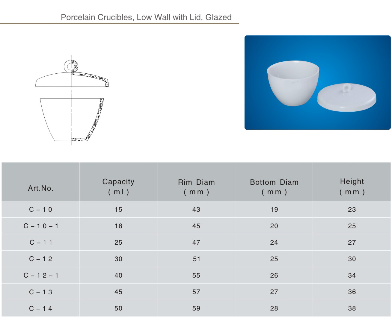 Porcelain Crucibles,Low Wall With Lid,Glazed