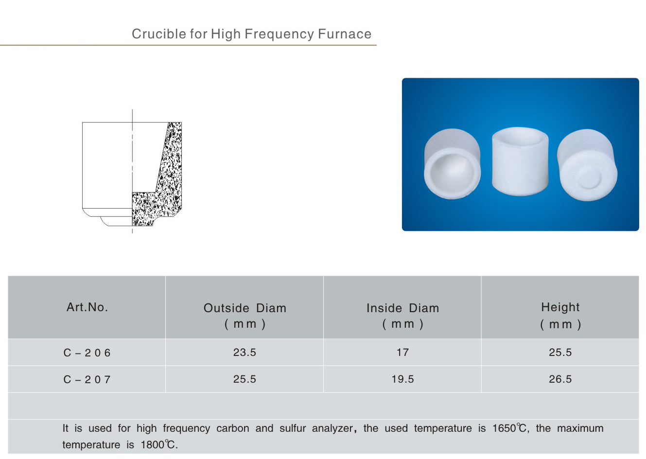 Crucible for High Frequency Furnace